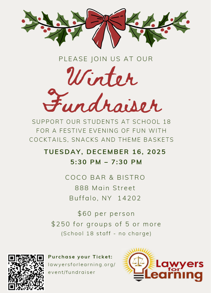 Lawyers for Learning (LFL, Inc.) is a not-for-profit corporation dedicated to providing a program through which members of the legal community of Erie County, New York, volunteer as tutors and mentors at School 18, a public grade school located in the West Side neighborhood of Buffalo, New York. LFL works to provide opportunities for learning and community support for the students at School 18 and their families.